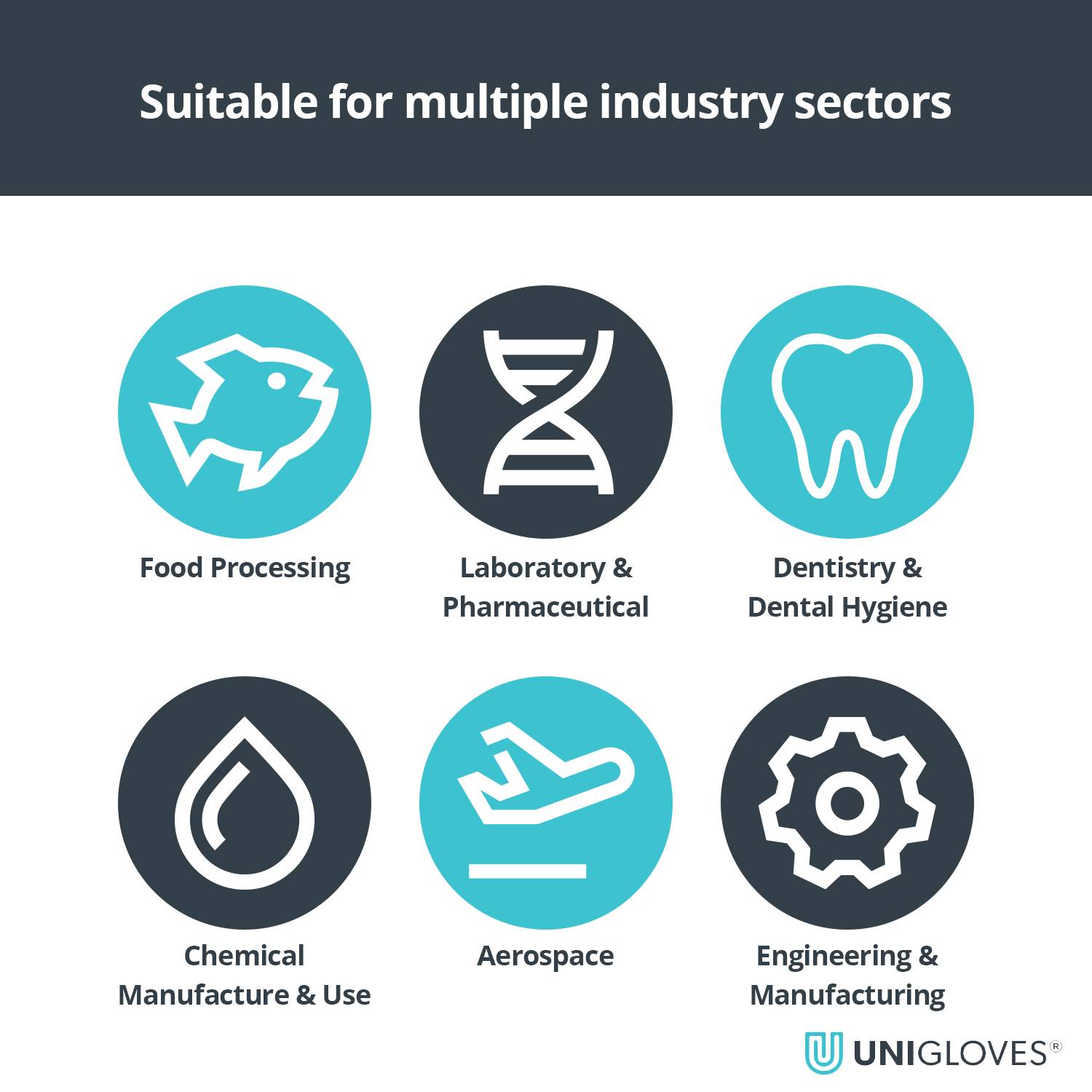 - Latex free nitrile with a chlorinated finish, AQL 0.65, exceeds medical standards for pinholes; powder free to stop hands from drying out, designed for use in dentistry, healthcare and manufacturing